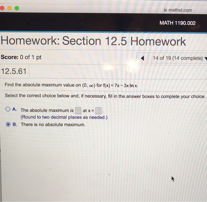 Mathxl Com Math 1190 002 Homework Section 12 5 Chegg Com