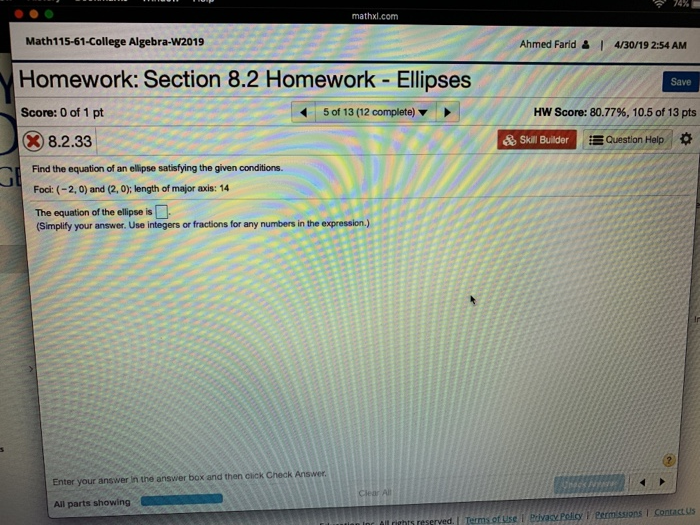 Solved Mathxl Com Math115 61 College Algebra W2019 Ahmed Chegg Com
